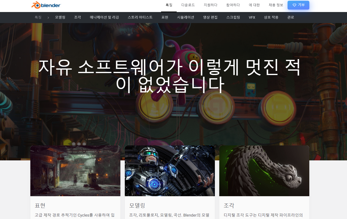 블렌더는 무료로 제공되는 3D프로그램이다. 여타의 비싼 유료 프로그램만큼이나 강력한 기능들을 제공해 3D가 필요한 여러 분야, 곧 애니메이션, 게임 등에 널리 활용되고 있다. 아래 링크로 가면 다운로드하실 수 있다.